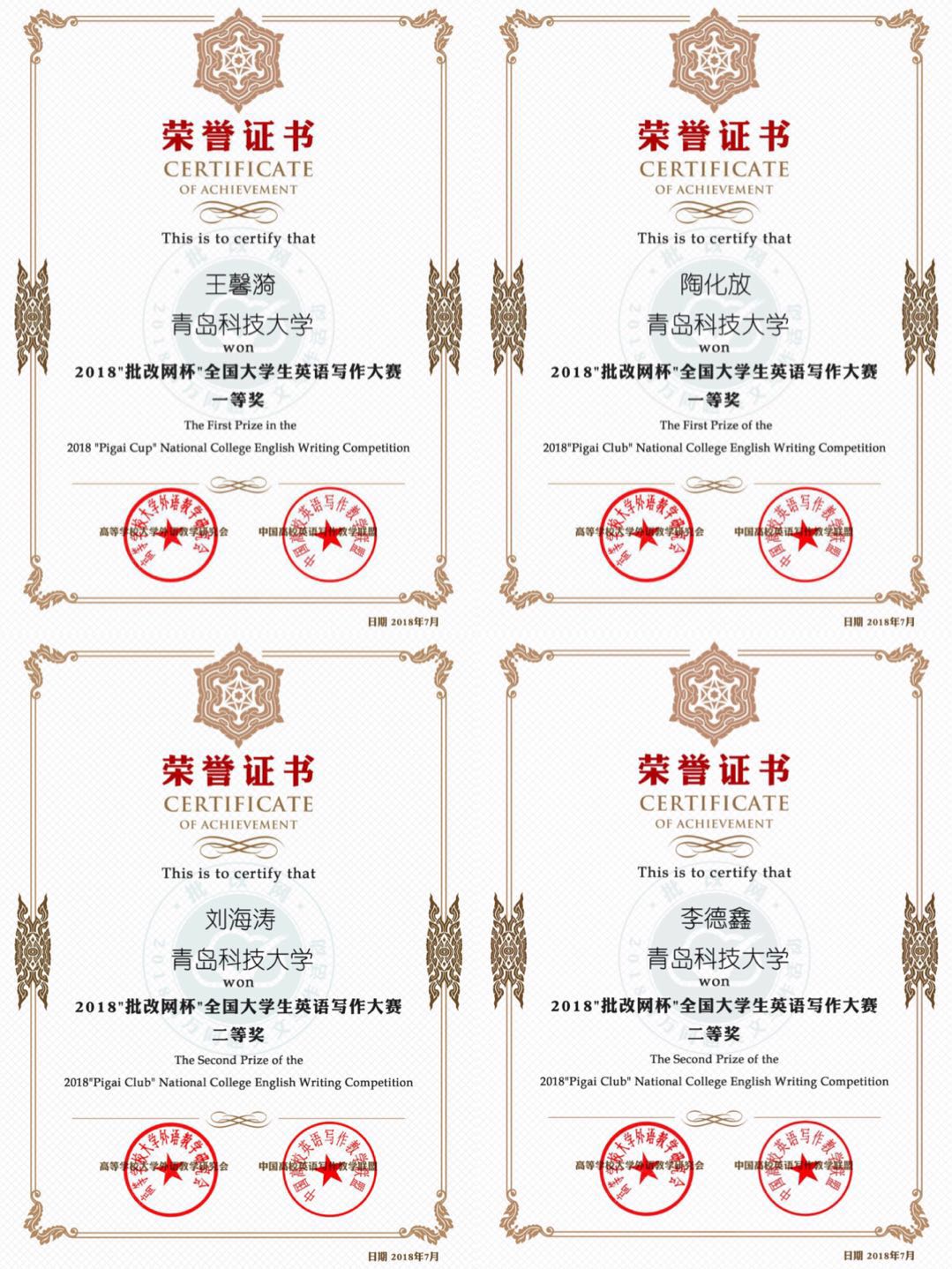2018百万同题英文写作大赛全国总决赛传来喜迅,世俱杯买球入口共有四名学生获奖,其中全国一等奖两名,全国二等奖两名。