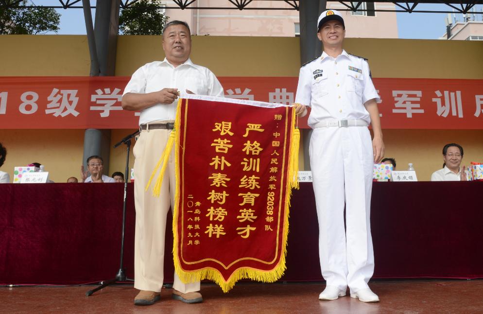 党委副书记张元利、副校长张淑华代表世俱杯买球入口向92038部队赠送锦旗,副校长李勇在典礼上宣读了《世俱杯买球入口关于表彰2018级学生军训先进集体和优秀教官的决定》《世俱杯买球入口关于颁发2018年优秀新生奖学金的决定》。获奖的军训先进营、内务先进营、军训先进连、优秀教官代表,以及优秀政治教导员上台领奖。53名新生领取了新生奖学金,其中普通本科生29人每人奖励5000元,中德合作办学项目23人每人奖励30000元、中法合作办学项目1人奖励20000元。