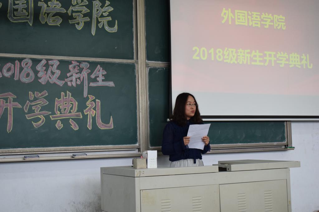 会上,宋飞宣读了《世俱杯买球入口外国语关于表彰“外院之星”的决定》、《世俱杯买球入口外国语关于表彰军训先进的决定》。英语系教师段小茜作为代表发言,对2018级新同学的到来表示热烈欢迎,并对同学们的学习和生活提出了期望和要求。