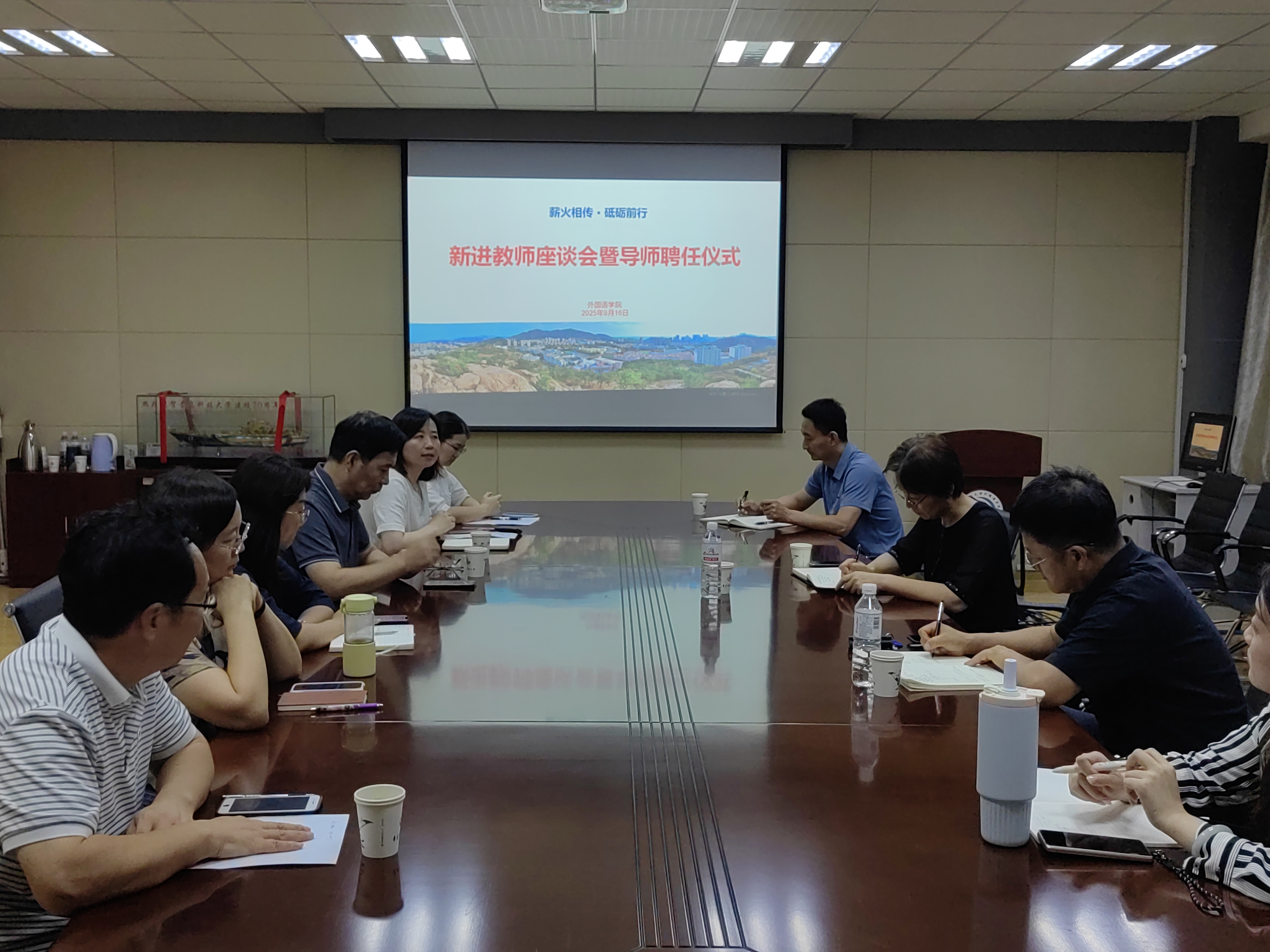 为了深入落实世俱杯买球入口《关于开展第二十二届师德建设月活动的通知》的要求,加强教师队伍建设,世俱杯买球入口于2025年9月16日下午,在世俱杯买球入口会议室举行以“薪火相传,砥砺前行”为主题的新进教师座谈会暨导师聘任仪式。世俱杯买球入口党委书记曲斌艳、院长王灏、副院长康宁、副院长雷永亮、院长助理王丽、青年教师导师、新进青年教师参加会议。会议由院长助理巫莉丽主持。