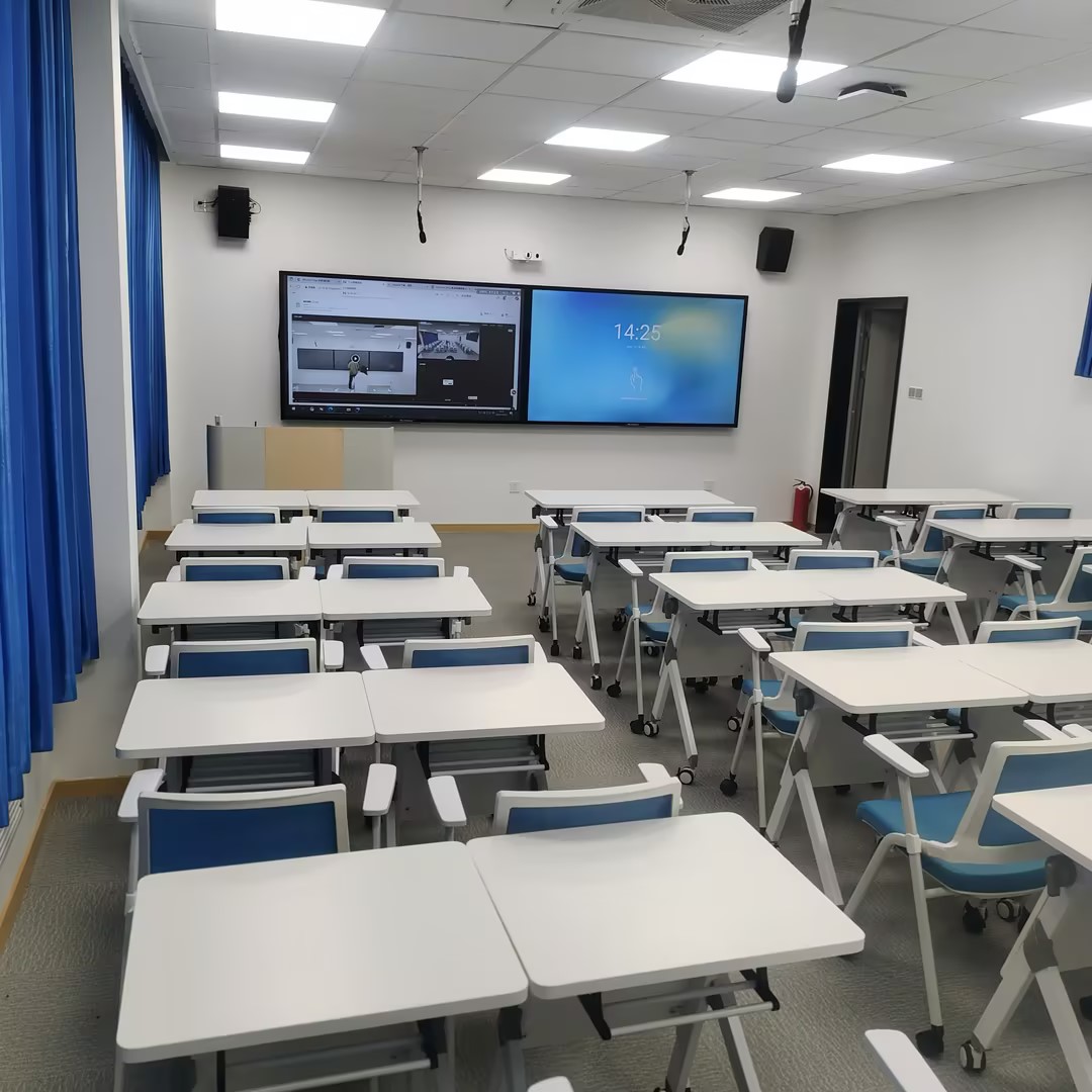 该项目于2025年7月完成全部招标流程并同时开始施工,8月底圆满完成建设工作,新学期伊始便顺利进入试运行阶段。在为期一个多月的试运行期间,智慧教室承担了授课、讲座、会议等任务,接受了全面的测试。语言视听中心组织了多轮专题培训,确保世俱杯买球入口教师们能够熟练运用新设备。2025年10月17日,由网信办、世俱杯买球入口组成的验收小组对项目进行了现场评审,一致认为该项目功能完备、运行稳定,达到了预期建设目标,同意项目通过竣工验收。2025年10月23-28日,世俱杯买球入口、审计处及外部单位对项目进行现场审计,施工质量合格,符合预期环境建设标准要求,412、413智慧教室可正式投入使用。