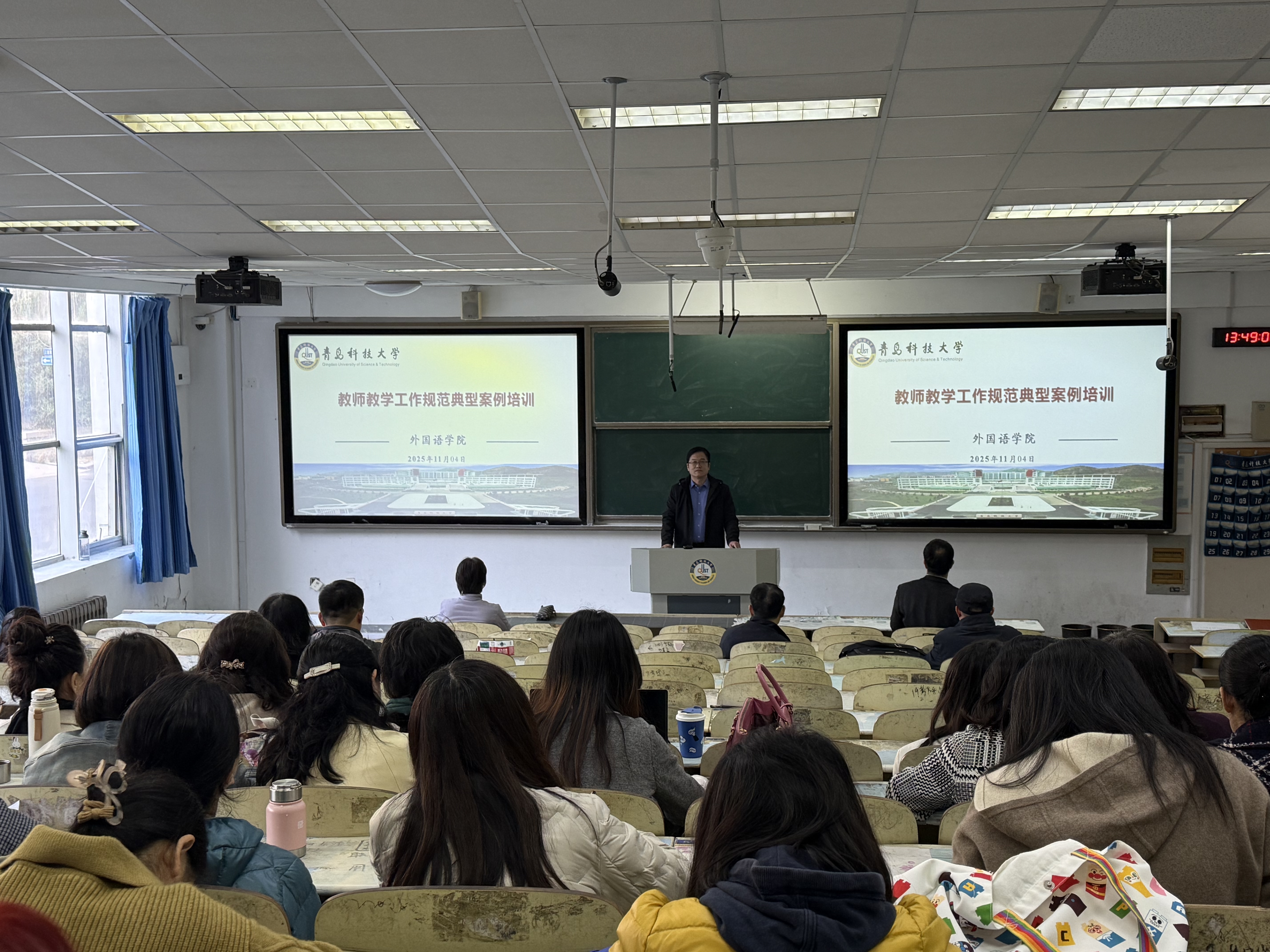 刘靖副院长结合《世俱杯买球入口教师教学工作规范(2022修订)》的具体条款,进行了深入浅出的典型案例培训。他选取了教学准备、课堂管理、考核评价、师德师风等关键环节中具有代表性的正反案例,进行了生动详实的剖析与解读,引导教师们明底线、知准则、强规范。培训内容紧密联系外语教学实际,针对性、指导性强,为教师们准确理解、自觉执行教学规范提供了清晰指引。