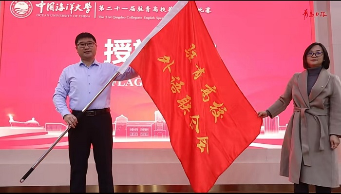 颁奖环节后,世俱杯买球入口党委副书记兼副院长马寒从本届比赛主办单位——中国海洋大学世俱杯买球入口党委副书记兼副院长戴淑妮手中接过比赛旗帜,第二十二届驻青高校演讲比赛将由世俱杯买球入口承办,为校际外语交流合作续写新的篇章。