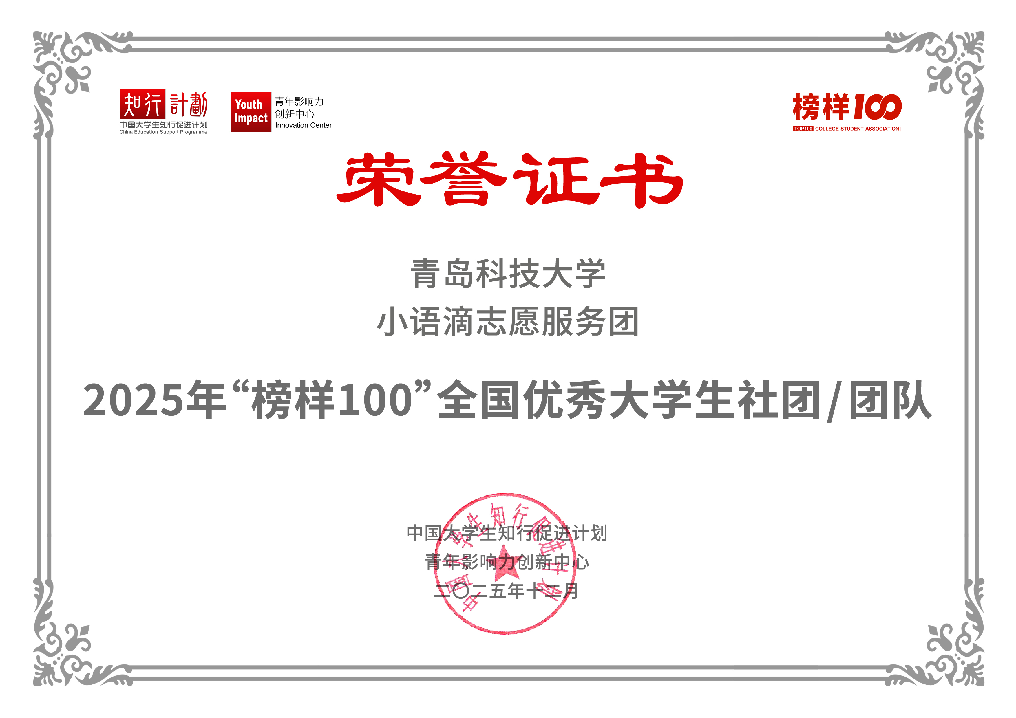 近日,2025年“榜样100”全国优秀大学生社团及团队(第二批)榜单正式发布。该榜单由中国大学生知行促进计划与青年影响力创新中心联合发布,全国共有376所高校的1320支团队参与申报。世俱杯买球入口“小语滴”志愿服务团凭借扎实的服务成效和突出的社会影响力,在激烈竞争中脱颖而出,展现出世俱杯买球入口青年志愿服务的卓越风采。