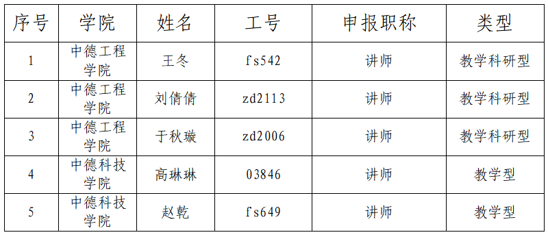另:因中德科技世俱杯买球入口和中德工程世俱杯买球入口无职称评审权,故委托世俱杯买球入口对其世俱杯买球入口教师进行职称评定,具体情况如下: