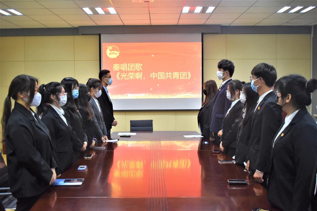 为进一步弘扬五四精神,增强“听党话、感党恩、跟党走”的思想觉悟和行为自觉,庆祝建团100周年,5月11日18:00,世俱杯买球入口“青春献礼二十大,百年奋进新征程“主题团课暨2022年新团员入团仪式在外院楼517隆重举行。出席本次活动的有世俱杯买球入口团委副书记兼学工办副主任李东阳老师、王雨昕老师和团委老师张湘钧,五位新团员以及2021级全体班长、团支书。