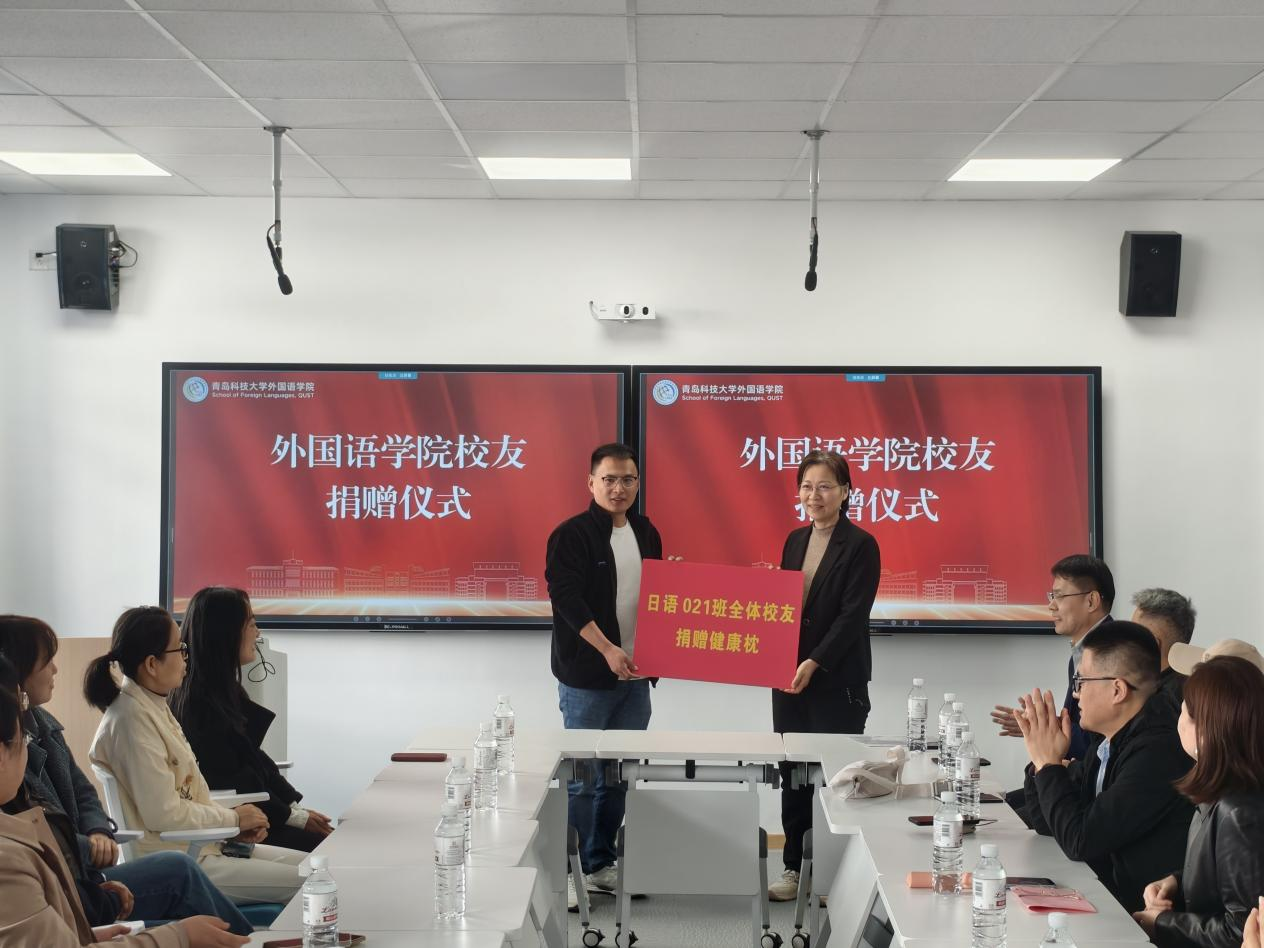 纪念大会上,日语021班校友向世俱杯买球入口捐赠健康枕,表达对母校的深厚情谊和美好祝愿。党委书记曲斌艳代表世俱杯买球入口接受捐赠,感谢校友们对世俱杯买球入口师生的关爱。